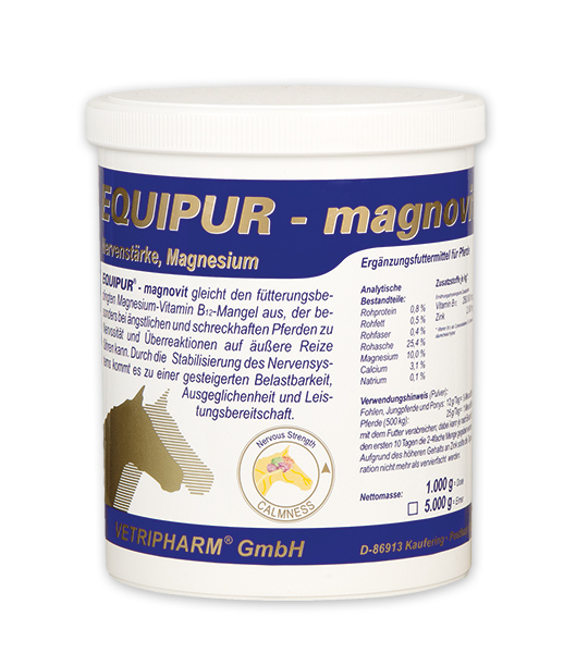 Eine bedarfsgerecht aufeinander abgestimmte Kombination aus Magnesium und Vitamin B12 bewirkt bei nervösen, ängstlichen und unkonzentrierten Pferden eine periphere und zentrale Entspannung. Durch die Stabilisierung des Nervensystems erhöht sich die Leistungsbereitschaft und Lernfähigkeit der Pferde; Stresssituationen wie Transport, Turnier, Futterneid etc. können leichter bewältigt werden.